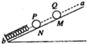 如圖所示,絕緣彈簧的下端固定在光滑斜面底端,彈簧與斜面平行,帶電小球Q(可視為質(zhì)點(diǎn))固定在絕緣斜面上的M點(diǎn),且在通過(guò)彈簧中心的直線ab上,F(xiàn)將與Q大小相同,帶電性也相同的小球P,從直線ab上的N點(diǎn)由靜止釋放,若兩小球可視為點(diǎn)電荷,在小球P與彈簧接觸到速度變?yōu)榱愕倪^(guò)程中,下列說(shuō)法中正確的是: