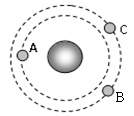 三顆人造地球衛(wèi)星A、B、C繞地球作勻速圓周運動,如圖所示,已知MA=MB<MC,則對于三顆衛(wèi)星,正確的是