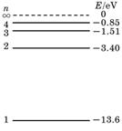 氫原子的部分能級(jí)如圖所示。已知可見光的光子能量在1.62eV到3.11eV之間。由此可推知,氫原子 ( )