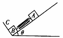 如圖所示在傾角為目的光滑斜面上有兩個用輕質(zhì)彈簧相連接的物塊A、B它們的質(zhì)量分別為A、B彈簧的勁度系數(shù)為七。為一固定擋板系統(tǒng)處于靜止?fàn)顟B(tài),F(xiàn)在開始用一恒力沿斜面方向拉物塊A使之向上運(yùn)動若穩(wěn)定后物塊A、B共同以加速度a沿斜面向上勻加速運(yùn)動(重力加速度為g)。求: