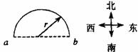 C r,向東;πr D 2r,向東;2r