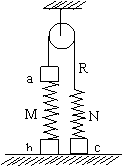 圖中a、b、c為三個(gè)物塊,M、N為兩個(gè)輕質(zhì)彈簧,R為跨過光滑定滑輪的輕繩,它們連接如圖并處于平衡狀態(tài)。