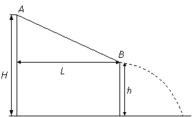 (14分)在一次國際城市運動會中,要求運動員從高為H的平臺上A點由靜止出發(fā),沿著動摩擦因數(shù)為的滑道向下運動到B點后水平滑出,最后落在水池中。設(shè)滑道的水平距離為L,B點的高度h可由運動員自由調(diào)節(jié)(取g=10m/s2)。求: