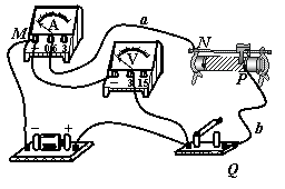 (2)在沒有改正錯誤時閉合開關(guān)后發(fā)現(xiàn)電壓表有示數(shù),電流表沒有示數(shù)。移動滑動變阻器的觸頭,兩表示數(shù)沒有變化。用另一電壓表測MP兩點發(fā)現(xiàn)無示數(shù),測NQ兩點有示數(shù),則出現(xiàn)上述情況的原因是