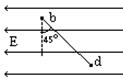 (9分)如圖,一帶電液滴在重力和電場力的作用下,從靜止開始由b沿直線運動到d,且bd與豎直方向所夾的銳角為45°。已知帶電液滴的質(zhì)量為m,水平方向的電場強(qiáng)度為E,帶電液滴從b運動到d所用時間為t,重力加速度為g。求: