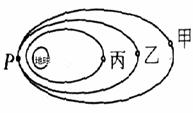 我國發(fā)射的衛(wèi)星甲、乙、丙在如圖所示的三個橢圓軌道上繞地球運(yùn)行,衛(wèi)星甲與衛(wèi)星乙的運(yùn)行軌道在P點相切.不計大氣阻力.下列說法正確的是 ( )