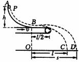 現(xiàn)在軌道下方緊貼B點安裝一水平傳送帶,傳送帶的右端與B的距離為l/2.當(dāng)傳送帶靜止時,讓P再次從A點由靜止釋放,它離開軌道并在傳送帶上滑行后從右端水平飛出,仍然落在地面的C點.當(dāng)驅(qū)動輪轉(zhuǎn)動從而帶動傳送帶以速度v勻速向右運(yùn)動時(其他條件不變),P的落地點為 D.(不計空氣阻力)