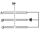 如圖,水平放置的三塊帶孔的平行金屬板與一個直流電源相連,一個帶正電的液滴從A板上方M點處由靜止釋放,不計空氣阻力,設液滴電量不變。從釋放到達B板小孔處為過程I,在BC之間運動為過程II,則 ( )