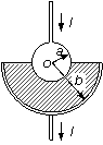 某個由導電介質(zhì)制成的電阻截面如圖所示。導電介質(zhì)的電阻率為ρ、制成內(nèi)、外半徑分別為a和b的半球殼層形狀(圖中陰影部分),半徑為a、電阻不計的球形電極被嵌入導電介質(zhì)的球心為一個引出電極,在導電介質(zhì)的外層球殼上鍍上一層電阻不計的金屬膜成為另外一個電極。設該電阻的阻值為R。下面給出R的四個表達式中只有一個是合理的,你可能不會求解R,但是你可以通過一定的物理分析,對下列表達式的合理性做出判斷。根據(jù)你的判斷,R的合理表達式應為