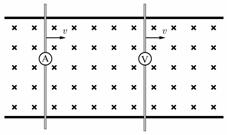 在兩根光滑的平行金屬導軌上有兩根直導線,導線中分別接有電流表