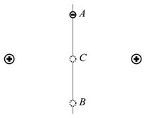 之間的帶負電粒子從中點