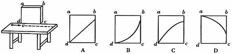 如圖所示,光滑水平桌面上,一小球以速度v向右勻速運(yùn)動(dòng),當(dāng)它經(jīng)過(guò)靠近桌邊的豎直木板的ad邊正前方時(shí),木板開始作自由落體運(yùn),平行光垂直照射木板,若木板開始運(yùn)動(dòng)時(shí),cd邊與桌面相齊,則小球在木板上的投影軌跡是( )