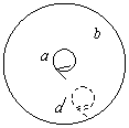 如圖所示,同一絕緣水平面內(nèi),一個(gè)小金屬環(huán)a和一個(gè)大金屬環(huán)b的圓心在同一點(diǎn)。a中通有順時(shí)針?lè)较虻暮愣娏?i>I, b環(huán)中不通電。在將a環(huán)移沿半徑向圖中a/位置的過(guò)程中,關(guān)于b環(huán)中的感應(yīng)電流的說(shuō)法正確的是( )