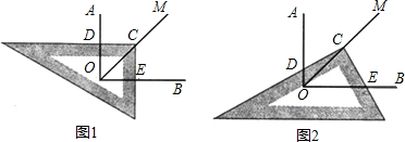 (1)如圖1,將三角板的直角頂點P在射線OM上移動,兩直角邊分別與OA,OB交于點C,D.