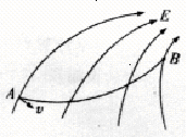 某帶電粒子僅在電場力作用下由A點(diǎn)運(yùn)動到B點(diǎn),電場線、粒子在A點(diǎn)的初速度及運(yùn)動軌跡如圖所示,可以判定 ( )![]()