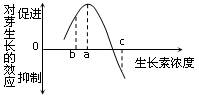 右圖表示不同濃度生長素對芽生長的影響。當植物表現出頂端優(yōu)勢時頂芽和最靠近頂芽的側芽所含生長素的濃度依次分別為