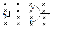 如圖,一個(gè)半徑為L(zhǎng)的半圓形硬導(dǎo)體AB以速度v,在水平U型框架上勻速滑動(dòng),勻強(qiáng)磁場(chǎng)的磁感應(yīng)強(qiáng)度為B,回路電阻為R0半圓形硬導(dǎo)體AB的電阻為r,其余電阻不計(jì),則半圓形導(dǎo)體AB切割磁感線產(chǎn)生感應(yīng)電動(dòng)勢(shì)的大小及AB之間的電勢(shì)差分別為![]()